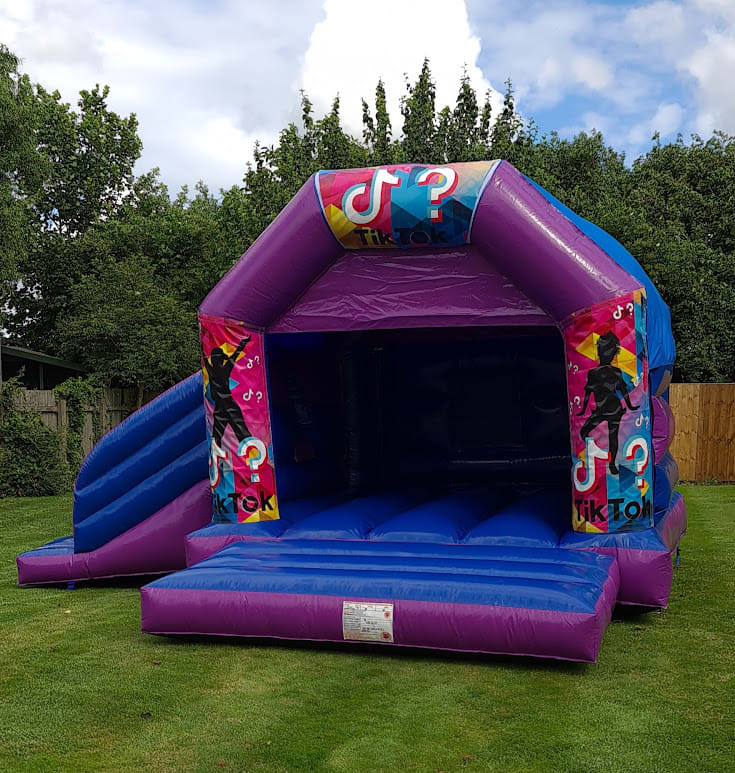 This impressive TikTok Slide Combo Dicso Castle is available to hire throughout all areas of Gloucestershire and Worcestershire, inside and outside, day and night. So what are you waiting for? Check below for availability on your chosen date- this one is a firm favourite with our customers!