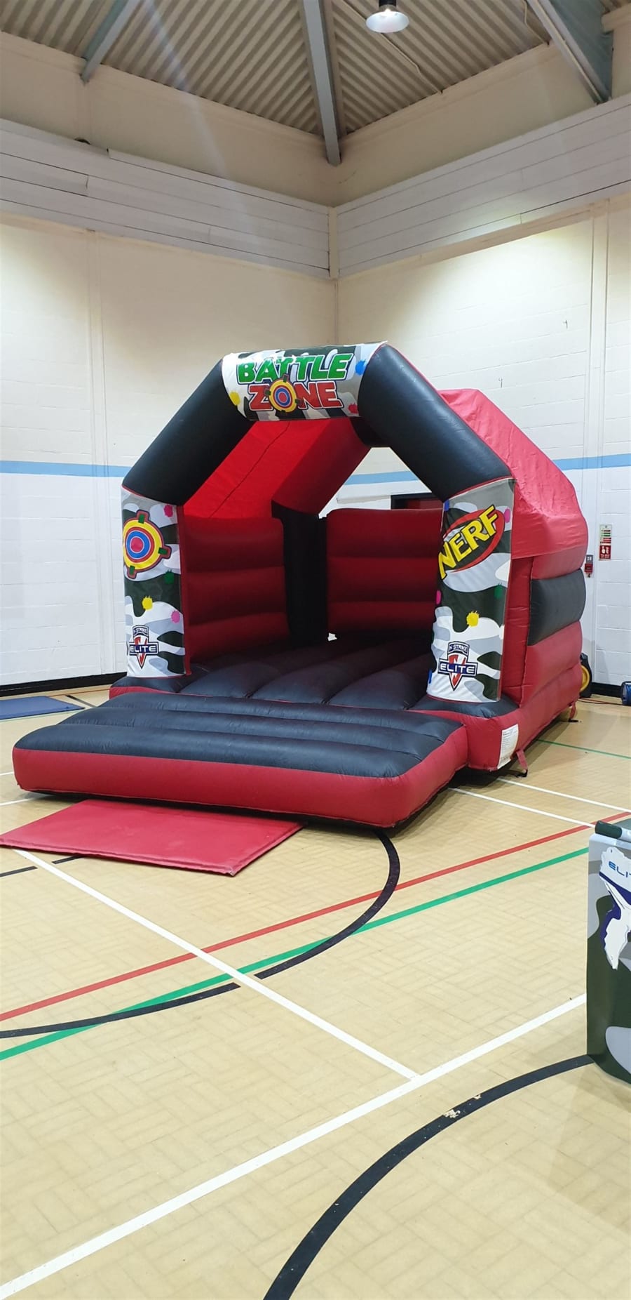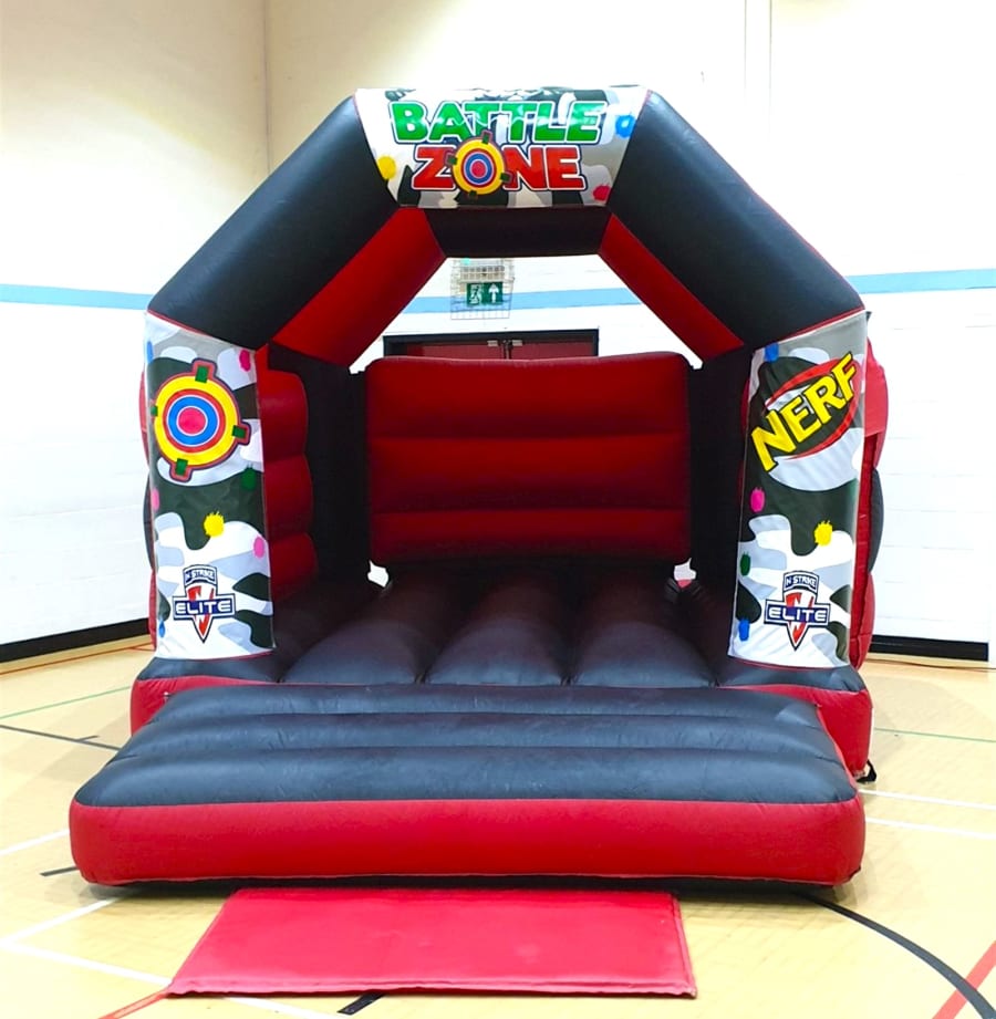 Our Nerf shoot out bouncy castle is available to hire on its own or within the Nerf Shootout Bouncy Castle and Game Package
